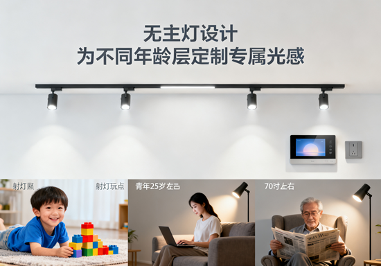 在無主燈設(shè)計(jì)的浪潮中,我們常被"極簡(jiǎn)"和"高級(jí)感"所吸引,卻忽略了照明設(shè)計(jì)最根本的目的——服務(wù)人的需求。不同年齡層對(duì)光線的生理需求差異顯著,從兒童的柔和暖光到老年人的高亮度照明,無主燈設(shè)計(jì)若要真正發(fā)揮其優(yōu)勢(shì),必須建立在對(duì)使用者需求的深刻理解之上。