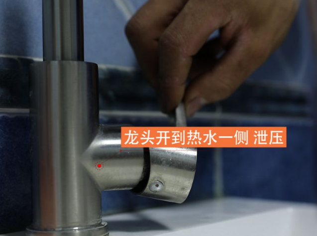 第三是關閉進水閥,第四是釋放熱水的壓力,它必須打到純熱水一側,并釋放壓力。