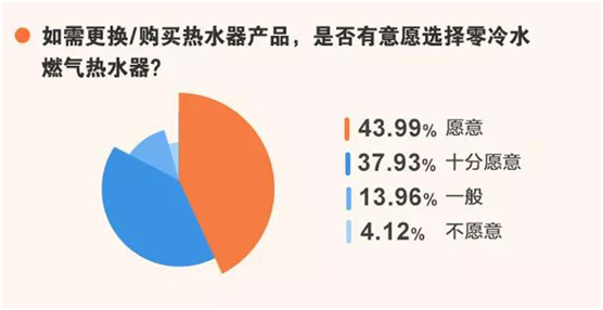 由于城鎮天然氣管道的普及,燃氣熱水器成為多數家庭的首要選擇。由PChouse太平洋家居網發起《2021家用熱水器消費升級趨勢調查》中更是顯示出:當家中需要更換或者購買熱水器時,81.92%受訪者表示愿意選購“零冷水燃氣熱水器”,足見這類產品的消費期待值很高。