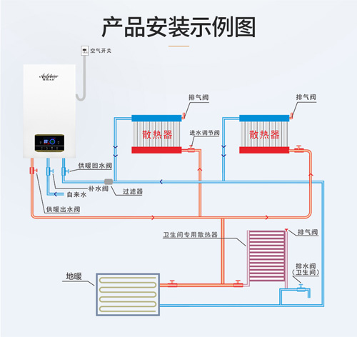 安拉貝爾電壁掛爐可以很好地支持這兩種方法,如果比較兩種方法,地暖舒適度最好,地暖均勻,舒適度高,隱蔽性強。北方地區的新房裝修時通常提前鋪地暖,裝修后只需購買電壁掛爐安裝調試即可。