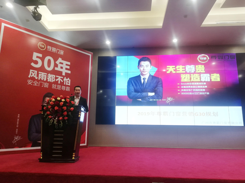精彩陸續上演,緊接著由尊霸門窗營銷總監圍繞“尊霸營銷規劃” 主題展開演講,為現場嘉賓呈上了一幅宏偉壯闊的尊霸門窗2019年發展藍圖。