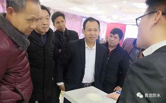 研討會首先從青龍遂川代理商羅總的開幕致辭開始。羅總真情分享了其加盟青龍公司的經歷和個人感受,并以業務工程為案例,將青龍特色防水材料產品與其他品牌產品相比較,介紹其對青龍產品的認識和防水補漏效果。羅總表示,經歷這么多年的防水從業經歷,非常認可青龍防水材料產品,相信會越做越順暢。