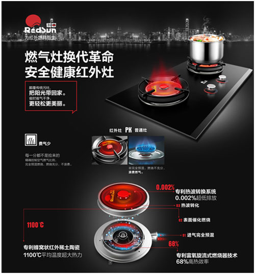 “一年能省4個(gè)月煤氣”,紅日家用紅外線燃?xì)庠睿切袠I(yè)與消費(fèi)者公認(rèn)的良心灶。技術(shù)領(lǐng)先的紅日燃具作為廚衛(wèi)行業(yè)領(lǐng)導(dǎo)品牌之一,成立于1981年,是國家級(jí)高新技術(shù)企業(yè),燃?xì)庠顕覙?biāo)準(zhǔn)起草單位等。紅日燃具擁有深厚的技術(shù)底蘊(yùn),“高紅外發(fā)射率多孔陶瓷節(jié)能燃燒器技術(shù)”顛覆性突破傳統(tǒng)火焰式灶具,榮獲中國馳名商標(biāo)、國家重點(diǎn)新產(chǎn)品等大獎(jiǎng)無數(shù)。更成為首個(gè)同時(shí)獲中國設(shè)計(jì)最高獎(jiǎng)“紅星獎(jiǎng)”、德國IF設(shè)計(jì)大獎(jiǎng)的中國燃?xì)庠钇放啤?/p>