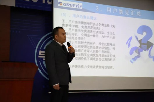 佛山格匠機電工程有限公司廖中健負責人通過強有力的調研數(shù)據(jù),展示了用戶對格力空調產品的了解程度,對格力空調服務質量的認可程度,傾聽用戶心聲,想用戶所想,急用戶所急。同時他表示要有敢于從雞蛋里面挑骨頭的想法,整合格力空調工程師的意見,推陳出新順勢而為,服務規(guī)范化的道路持續(xù)不斷地向前推進。