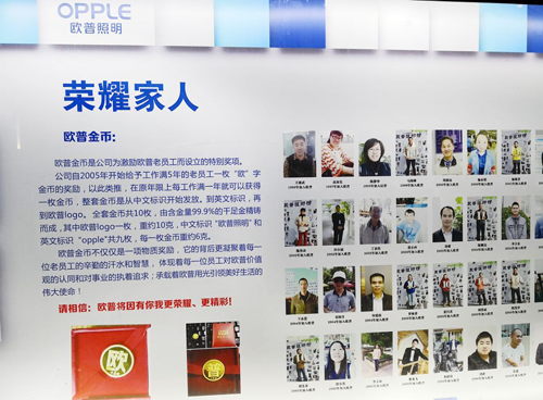 讓筆者印象深刻的是,宣傳欄上有一名叫“王雄武”的員工,加盟歐普的時間是1996年,至今23年。也就是說,在歐普創立之初,他就已經加入歐普,是歐普歷史的見證者之一。