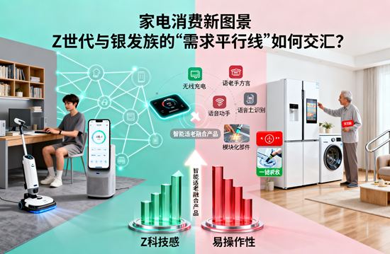 當(dāng)00后小李用手機(jī)語音指令啟動(dòng)掃地機(jī)器人時(shí),65歲的張阿姨正在社區(qū)活動(dòng)中心學(xué)習(xí)用智能電飯煲預(yù)約煮粥。這兩個(gè)看似平行的生活場(chǎng)景,正勾勒出中國家電市場(chǎng)最鮮活的消費(fèi)圖譜——Z世代與銀發(fā)族,這兩個(gè)年齡跨度超過40年的群體,正在用截然不同的方式重塑家電行業(yè)。他們就像兩條并行不悖的軌道,既保持著各自的運(yùn)行邏輯,又在數(shù)字化浪潮中悄然靠近。