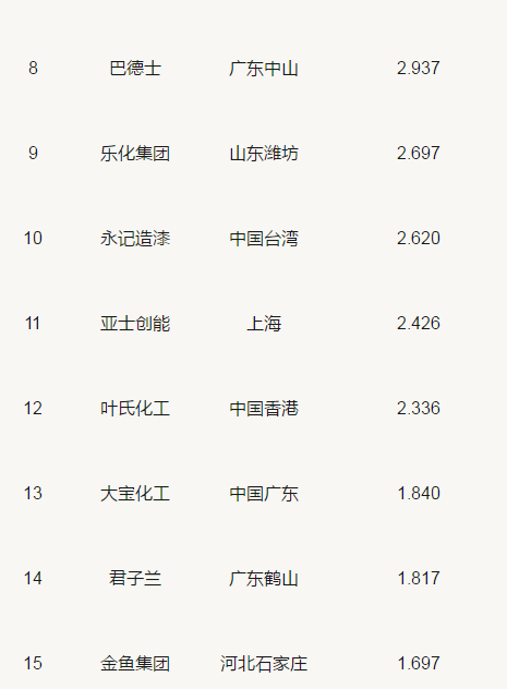2019中國(guó)涂料25強(qiáng)企業(yè)排行榜