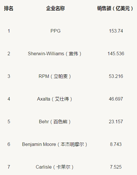 2019美國(guó)涂料25強(qiáng)企業(yè)排行榜